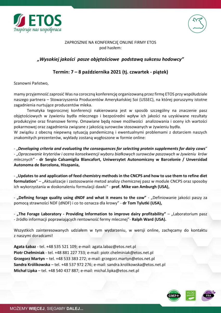 Konferencja online Działu Żywienia Przeżuwaczy